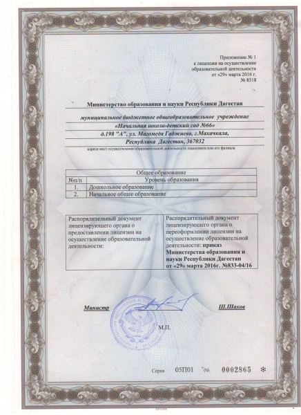 | Адрес местонахождения образовательной организации* | 367032, РеспубликаДагестан, г. Махачкала, ул. М. Гаджиева 198 А |